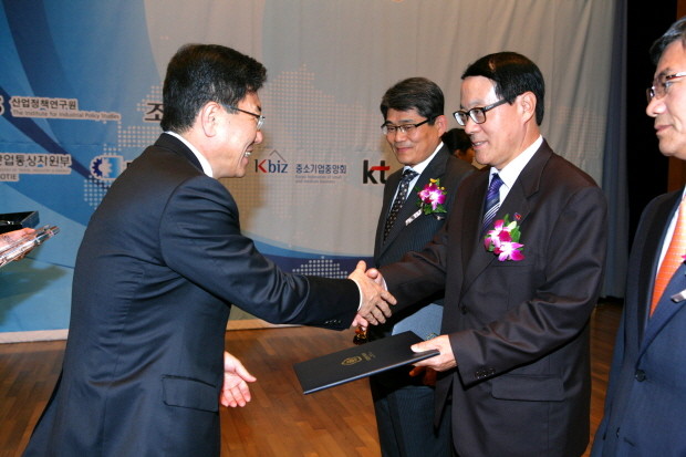 [시민일보]23일 경기 안양시가 대한상공회의소 국제회의장에서 열린 제10회 지역산업정책 대상 시상식에서 스마트콘텐츠밸리 조성과 친기업정책으로 종합우수상을 수상했다. 사진은 조인주 기획경제국장이 수상하는 모습.
