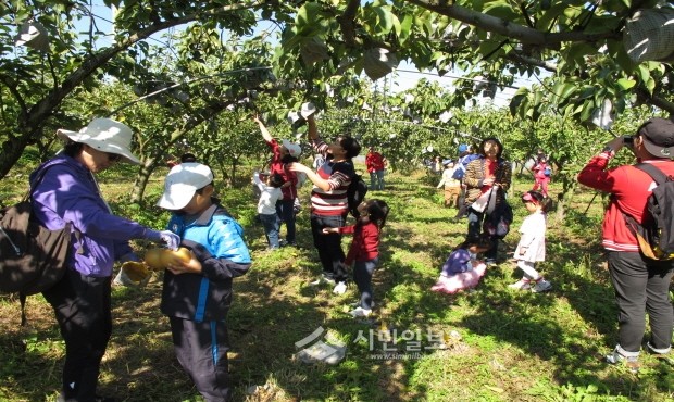 최근 경기 이천시에 위치한 엘지농장, 길경농원, 한내농원 3곳에서 ‘건강한 먹거리와 함께하는 행복한 이천나들이’를 주제로 '제4차 이천장터 소비자 체험행사'가 열렸다. 사진은 과일 수확체험을 하고 있는 소비자들의 모습.
