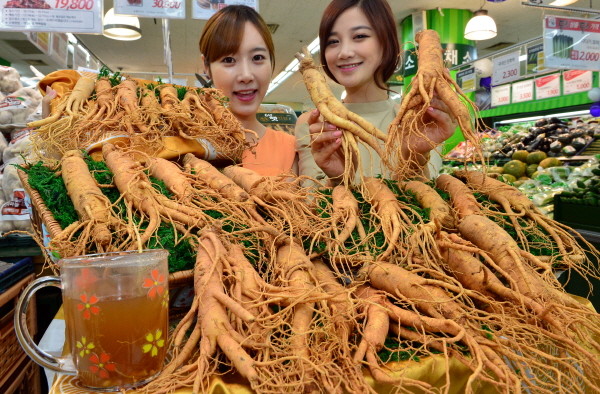 [시민일보]27일 오전 서울 성동구 롯데마트 행당역점에서 모델들이 롯데쇼핑 창사 34주년을 맞이해 오는 30일까지 전북 진안의 6년근 햇 인삼(750g/1팩)을 시세보다 45%가량 저렴한 50,000원에 선보이고 있다.