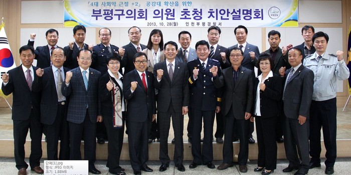 이날 이후종 부평구의회 의장은 “부평지역치안을 위해 노력하고 계신 부평경찰 여러분들의 노고에 감사드리고 부평구의회에서 치안활동에 도움을 줄 수 있도록 적극적으로 협조해 부평지역 치안유지에 힘쓰겠다”고 밝혔다.