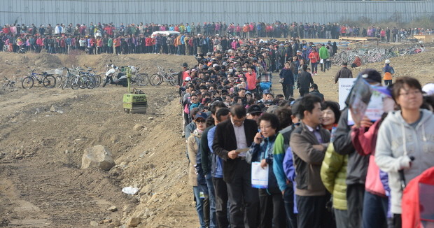 28일 오전 경기도 하남시 신장동 현안2지구에서 수도권 최대 교외형 복합 쇼핑몰 '하남 유니온스퀘어' 착공식이 열려 많은 하남시민들이 착공식에 참석하기 위해 식장으로 향하고 있다. 2016년 하반기 개장을 목표로 하고 있는 하남 유니온스퀘어는 백화점(4만5천㎡)을 비롯해 명품관(1만2천㎡), 패션관(4만7천㎡), 트레이더스(창고형 할인매장·1만2천㎡) 등이 들어선다.