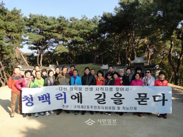 지난 26일 광진구 구의2동 주민센터가 청백리 인문학길 조성 사업을 기념해 주민자치위원회, 동직능센터 주민 등 45명과 함께 다산 정약용 생가 등 사적지를 탐방하며 청렴의식을 되새겼다. 사진은 탐방을 마친 후 다산 정약용의 묘소 앞에서 참여자들이 기념촬영을 한 모습.
