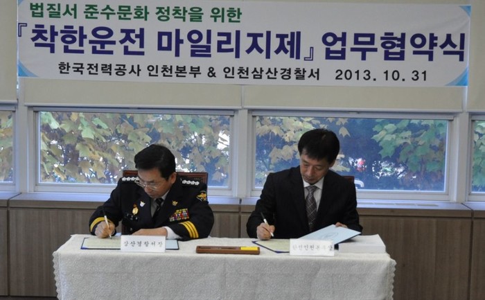 이에 따라 삼산서는 이미 부평구청을 비롯해 E-마트, 롯데마트 등 유관기관과 업무협약을 체결한데 이어 900여명의 기술 인력이 근무하는 한국전력공사 인천본부와 ‘착한운전 마일리지제’ 정착을 위한 업무협약을 체결했다고 2일 밝혔다.