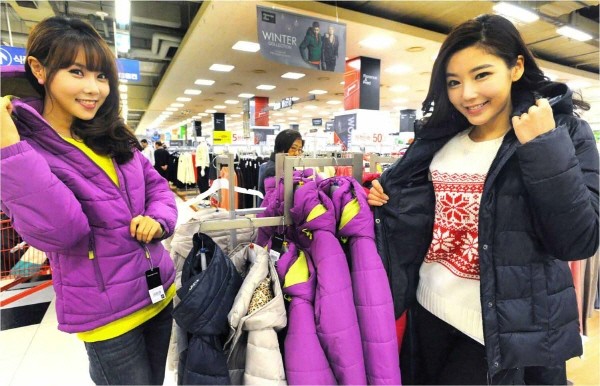 3일 오전 서울 영등포구 홈플러스 영등포점에서 모델들이 겨울패딩을 입고 포즈를 취하고 있다. 홈플러스는 플로렌스&프레드(Florence&Fred) 겨울 의류를 시중가 대비 40% 이상 저렴하게 선보인다.