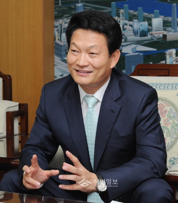 | ▲ 송영길 인천시장이 '아이 키우기 좋은 인천'을 만들기 위한 사업에 대해 설명하고 있다. | ||