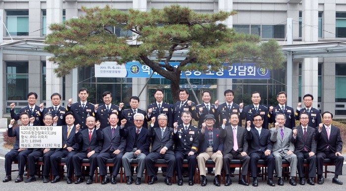 | ▲ 역대 인천경찰청장 초청 간담회 참가자들이 기념촬영을 하고 있다. | ||