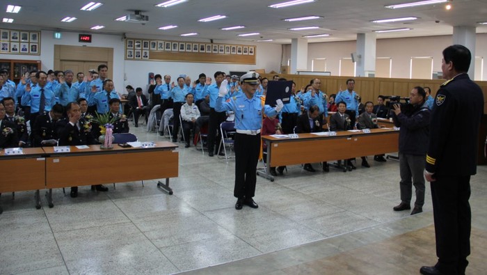 | ▲조종림 서장이 부평모범운전자회 회원들로부터 선서를 받고 있다. | ||