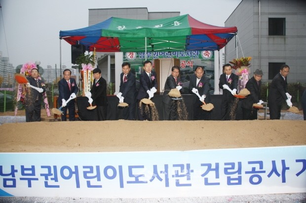 경기 이천시는 지난 6일 ‘남부권 어린이도서관 건립공사 기공식’을 열었다. 장호원읍 서동대로 청미도서관내에 건립될 어린이도서관은 내년 4월 준공을 목표로 공사에 들어갔다. 사진은 기공식 장면.