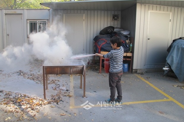 군포소방서는 화재가 잦은 겨울을 맞이해 지역내 초등학생들을 대상으로 소방서 견학, 소화기·소화전·CPR 체험 및 교육을 실시 중이다. 사진은 지난 11일 교육에 참여한 능내초등학교 3학년 학생이 소화기 체험을 하고 있는 모습.