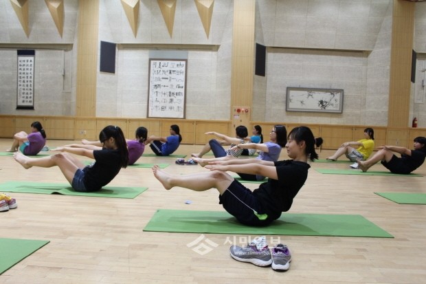 | ▲ 지난 7월 아이들의 비만예방을 위해 중·고등학생들을 대상으로 실시한 '청소년 Body Change 프로그램'에서 요가 프로그램에 참가해 요가를 하고 있는 아이들. | ||