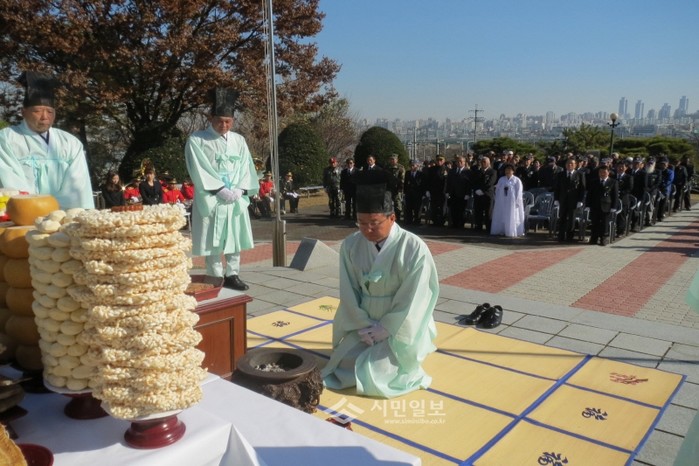 경기 화성시 보훈단체협의회는 지난 13일 현충탑에서 채인석 화성시장과 보훈 유가족 등 200여명이 참석한 가운데 ‘제4회 화성시 호국영령 군경 합동 위령제’를 개최했다. 사진은 제사를 올리는 모습.