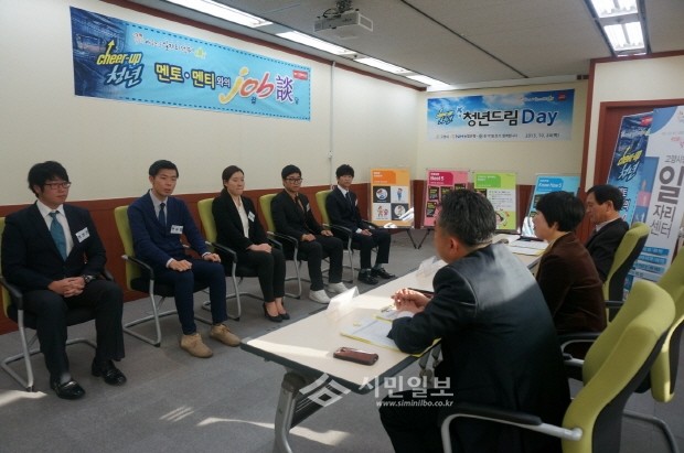 경기 고양시는 최근 고양일자리센터에서 '청년드림데이'를 개최했다. 이날 행사는 NH농협은행 멘토와 청년구직자 멘티의 취업 '잡(job)談'을 시작으로 모의면접, 현장채용행사를 시간대별로 진행했다. 사진은 모의면접에 참여한 청년구직자들의 모습.
