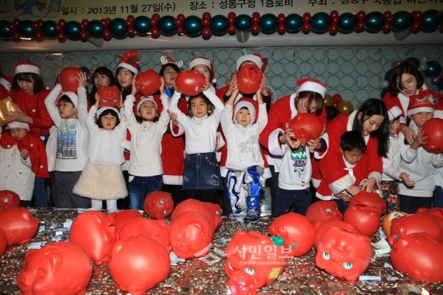 27일 오전 서울 성동구청 1층에서 지역내 어린이 3100여명이 모은 저금통을 개봉하는 '사랑의 동전모으기' 행사가 열렸다. 이 행사는 17년째 이어지고 있으며 지난해에는 1250여만원이 모금됐다. 사진은 저금통을 개봉한 어린이들의 모습.