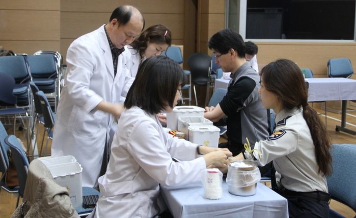 | ▲ 남부서 직원들이 건강검진을 받고 있다. | ||