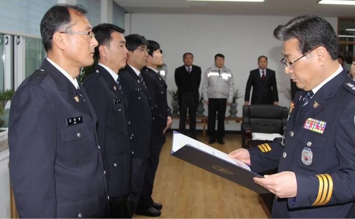 인천 강화경찰서 2일 서장실에서 각 과장 및 동료직원들이 참석한 가운데 승진임용 신고식을 가졌다.