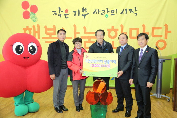 [시민일보]경기 연천군은 지난달 29일 연천군 노인복지관에서 경기도 최초로 '행복나눔 한마당 행사'를 개최했다. 이날 행사에서는 경기사회복지공동모금회가 '따뜻한 겨울나기'의 일환으로 불우이웃에게 난방비를 지원했고, 연천군 기업인협의회에서도 1000만원을 지정 기탁했다. 사진은 김규선 연천군수와 기업인협의회 관계자들이 기념촬영 하는 모습.