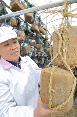 전남 해남군은 농한기를 맞아 전통발효식품 가공 농가에서 매주 만들기가 한창이라고 2일 밝혔다. 사진은 삼산면 두미원영농조합법인에서 메주를 만들고 있다.