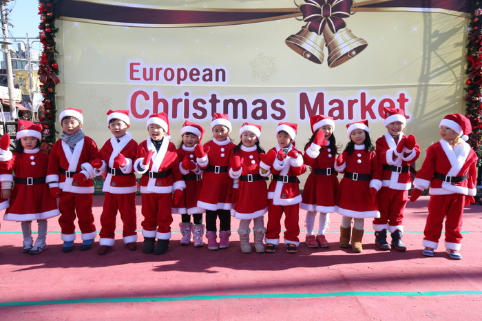 [시민일보]서울 성북구는 지난달 29~30일 성북천 분수마루에서 '유러피언 크리스마스 마켓'을 열었다. 이번 행사에서는 각국의 전통음식과 민속음악, 특산품 등의 판매와 산타 복장 콘테스트, 댄스 콘테스트가 개최됐다. 사진은 30일 열린 '산타 복장 콘테스트'에 참가하기 위해 산타옷을 입고 무대에 오른 아이들의 모습.