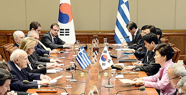 박근혜 대통령이 3일 오후 청와대에서 카롤로스 파풀리아스 그리스 대통령과 정상회담을 하고 있다.