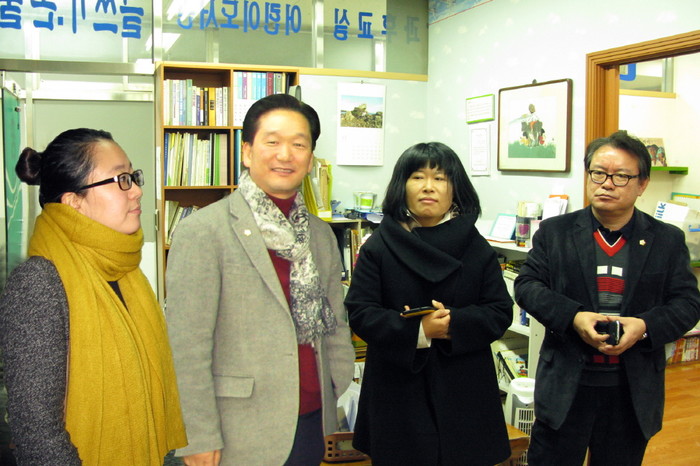 최근 서울 성북구의회는 성북작은도서관네트워크 관계자와 민간작은도서관 운영 및 독서문화 활성화 방안에 대해 토론하고, 꿈터·아름드리어린이도서관 현장 방문을 실시했다. 사진은 꿈터어린이도서관에 방문한 (오른쪽 부터) 나영찬 의원, 이윤희 의원, 김태수 위원장, 목소영 의원의 모습.