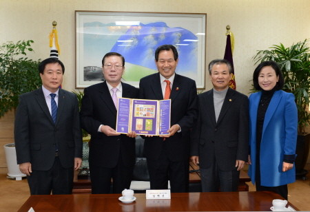 [시민일보] 성백진 서울시의회 의장 직무대리(민주당ㆍ중랑1)와 이창섭 운영위원장(민주당ㆍ강서1), 김기옥 보건복지위원장(민주당ㆍ강북1)이 11일 서울시의회를 방문한 대한결핵협회 서울시지부 회장에게 결핵예방 및 퇴치 사업을 위한 성금을 전달했다.