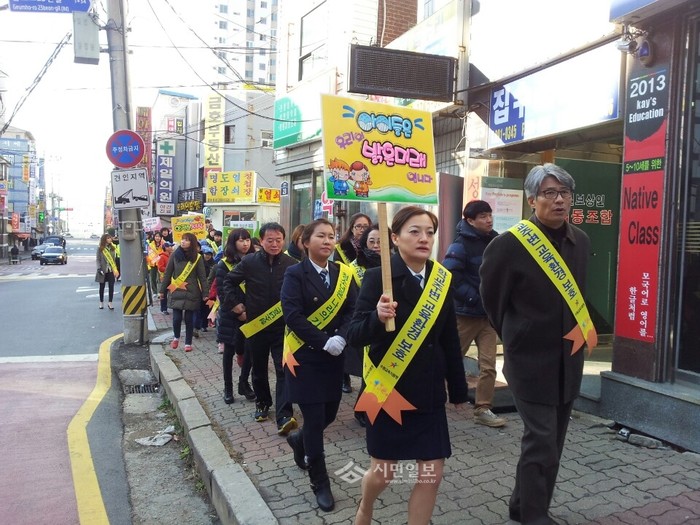 [시민일보]경기 수원교육지원청은 연말연시를 맞이하여 건전하고 안전한 학교 주변 교육환경을 조성하고자 지난 10일 칠보초등학교 주변 유해업소에 대해 합동단속 및 캠페인을 실시했다. 사진은 거리에서 피켓을 들고 캠페인을 펼치는 모습.