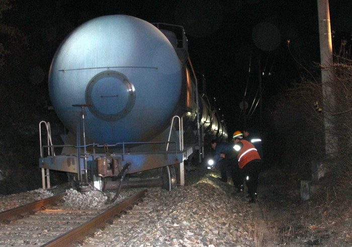 12일 새벽 0시50분께 경북 의성군 비봉역 인근에서 울산 장생포에서 출발해 강원도 만종역으로 가던 화물열차가 탈선하고 선로가 일부 훼손되면서 중앙선 운행이 중단됐다. (사진= 의성소방서 제공)