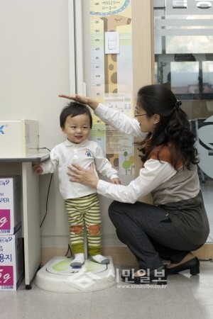 | 사진은 보건소를 방문한 한 어린이가 키를 재고 있는 모습. | ||