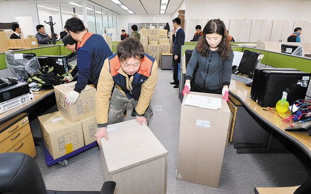 중앙행정기관의 정부세종청사 2단계 이전이 시작된 13일 오전 세종시 어진동 정부세종청사 보건복지부에서 복지부 직원들과 이사업체 직원들이 짐을 옮기고 있다.
