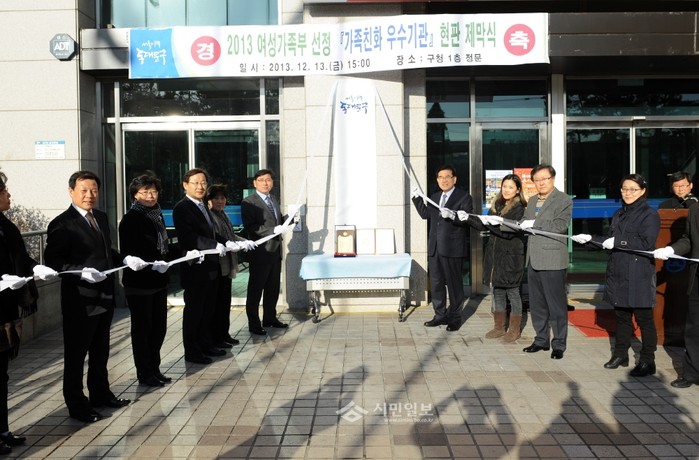 [시민일보]지난 13일 서울 동대문구는 근로자가 일과 가정생활을 조화롭게 병행할 수 있도록 가족친화제도를 모범적으로 운영하는 기업이나 기관에 심사를 통해 인증을 부여하는 '2013년 가족친화 인증 공공기관 평가'에서 인증기관으로 선정돼 현판 제막식을 열었다.