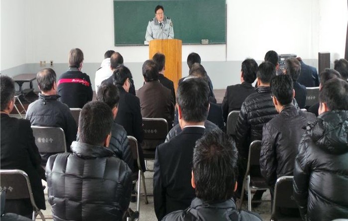 | ▲ 강화서 직원이 운전종사자들을 대상으로 교통사고예방 교육을 하고 있다. | ||