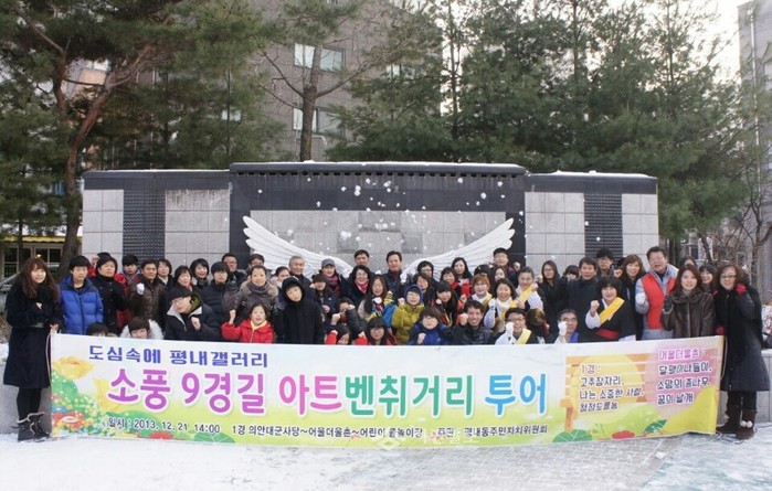 [시민일보]지난 21일 경기 남양주시 평내동 주민자치위원회는 지역내 주민 및 청소년들과 함께 '평내 소풍 9경길 아트벤치 조성' 준공식을 개최했다. 행사는 참석한 주민들이 소풍 9경길을 함께 산책한 후 모두 물놀이 공원에 모여 그 동안의 경과보고, 천사의 날개 포토존 제막식, 소풍 9경길 시낭송 등이 진행됐다. 사진은 '천사의 날개' 포토존 앞에서 주민들이 기념촬영을 하고 있는 모습.