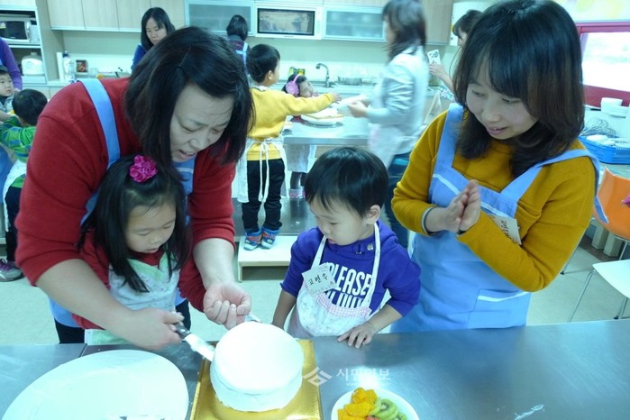 [시민일보]지난 27일 인천북부교육지원청 특수교육지원센터가 장애 유아의 발달을 도모하고 긍정적인 가족 내 분위기를 조성하기 위해 지역내 장애유아들과 학부모들을 초대해 '케이크 만들기' 프로그램을 실시했다. 사진은 직접 케이크를 만들어보는 유아들과 학부모들의 모습.
