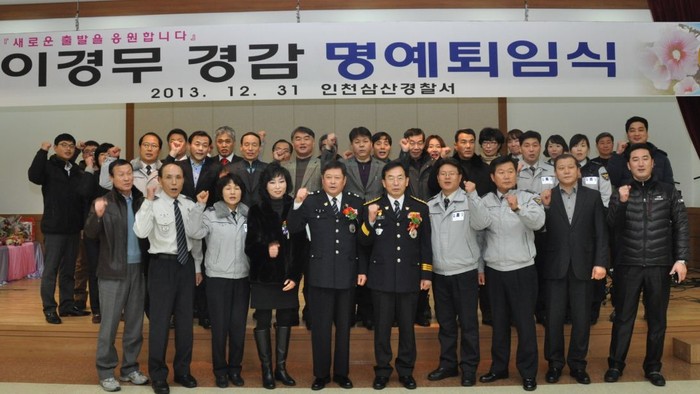 이경무 경감은 “34년을 경찰에 투신해 근무하면서 힘든일도 많고 보람된 일도 많았는데 영예로운 퇴임을 맞게 해준 동료 및 가족들에게 감사드린다”며 “후배 경찰관들에게 맡은 바 임무에 충실하게 인천시민들에게 봉사하는 마음으로 근무해 주길 바란다”고 말했다. 문찬식 기자