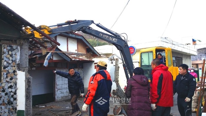 [시민일보] 전남 장흥군 일등환경 폐기물 처리업체는 흉물로 남아있는 건물을 볼 때마다 너무 한스러워 우울하다는 차상위 노인의 사연을 듣고 지난달 30일 장흥군 희망복지지원단과 폐건물 철거작업을 무료로 실시했다.