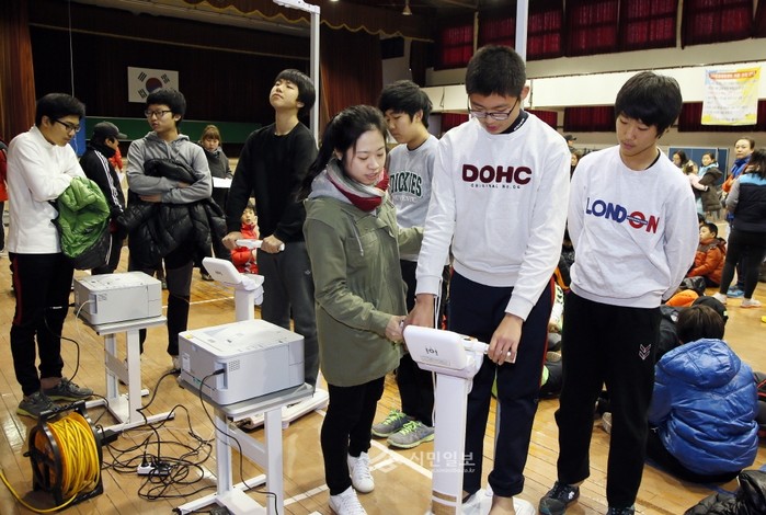 [시민일보]지난 4일 인천 남구가 문화체육센터에서 2014년 1/4분기 청소년 생활체육 토요프로그램 오리엔테이션을 실시했다. 이 프로그램은 농구외 3개 종목으로 구성됐고 분기별로 운영된다. 사진은 이날 오리엔테이션에서 사전기초체력검사를 받는 청소년들의 모습.