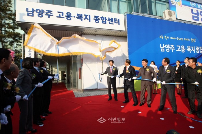 [시민일보]경기도 '남양주 고용·복지종합센터'가 지난 6일 개소식을 하고 본격적인 운영에 들어갔다. 전국 최초로 시범 운영되는 종합센터는 일자리센터·고용센터·복지기관 등으로 나눠져 있던 기존 행정시스템을 한곳에 모은 원스톱 서비스 제공기관이다. 사진은 김문수 경기도지사와 유정복 안전행정부 장관 등 개소식에 참여한 관계자들의 제막식 모습.