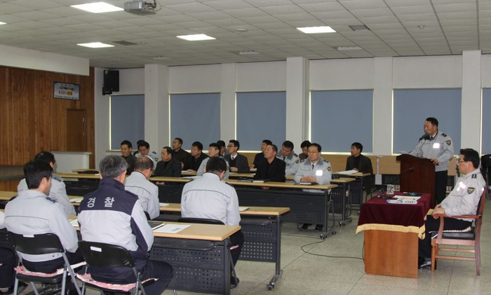 | ▲ 이창수 서장이 민생안정 및 법질서 확립 추진 점검 회의를 주제하고 있다. | ||