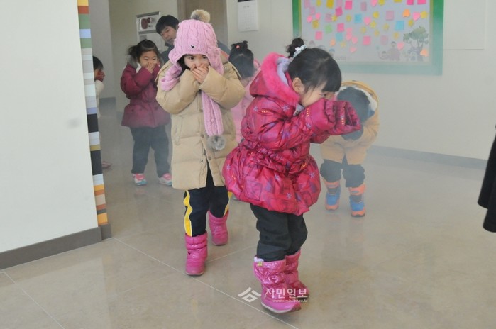 [시민일보]서울 은평소방서에서는 9일 오전 시민안전체험교실에서 에벤에셀 어린이집 원생 및 지도교사를 대상으로 화재예방 소방안전교육을 실시했다. 사진은 어린이집 원생들이 화재를 대비한 피난체험을 하고 있는 모습.