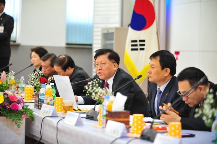 [시민일보]지난 9일 경기 여주시가 시민들과의 소통을 위해 가남읍 가남복지회관에서 ‘2014 시민과의 대화’를 열고 시장 및 관계자들과 시민들이 시정 운영 전반과 각종 불편사항들에 대한 의견을 듣고 대화하는 시간을 보냈다. 사진은 시민들과 대화중인 김춘석 여주시장(가운데)의 모습.
