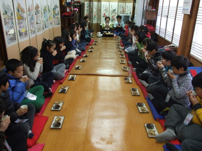 인천평생학습관은 지난 6일~9일 초등학교 4학년 학생을 대상으로 '우리역사와 효(孝)의 만남'이란 주제로 겨울방학특강 '전통문화 효(孝) 체험교실'을 운영했다. 참가학생들은 역사교육·택견·차례상 차리기·연 만들기·다례 등을 배웠다. 사진은 다례를 배우는 학생들의 모습.