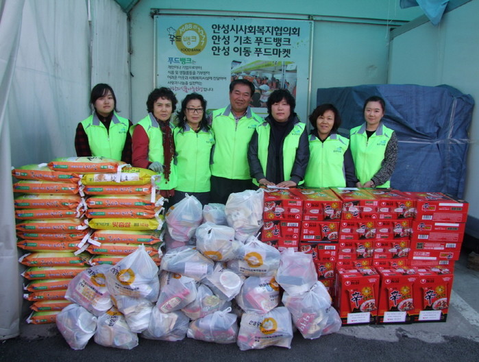 안성시사회복지협의회 부설 찾아가는 이동푸드마켓 좋은이웃들이 재가가정을 직접 방문, 쌀과 라면·식품꾸러미를 전달했다. 이번 이동푸드마켓은 차량 및 봉사단을 통해 196여 재가가정에 전달됐다. 사진은 봉사 단원들이 물품 전달 후 기념사진을 촬영하는 모습.