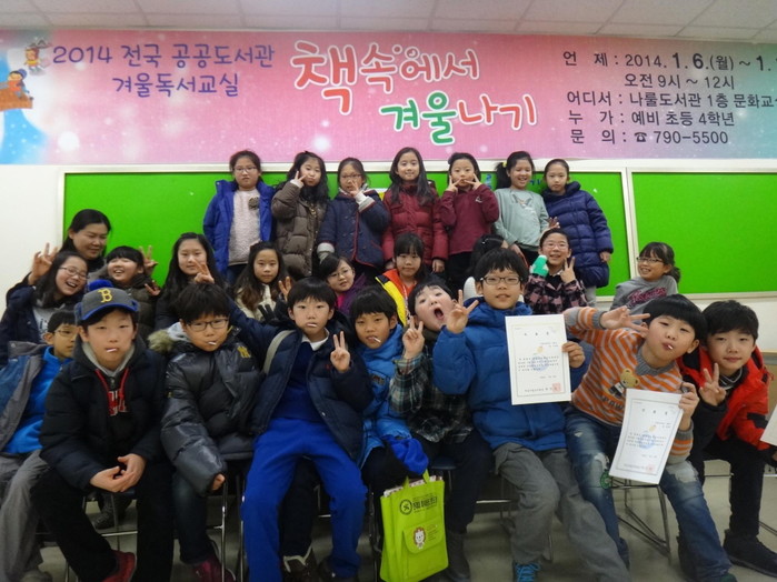 지난 10일 경기 하남시립도서관이 ‘책 속에서 겨울나기’를 주제로 독서법, 글쓰기, 퀴즈 등을 통해 독서와 관련한 다양한 체험을 실시한 제88회 겨울독서교실을 마치고 수료자 50여명이 참여한 수료식을 열었다. 사진은 수료식에 참여한 어린이들이 기념촬영을 한 모습.