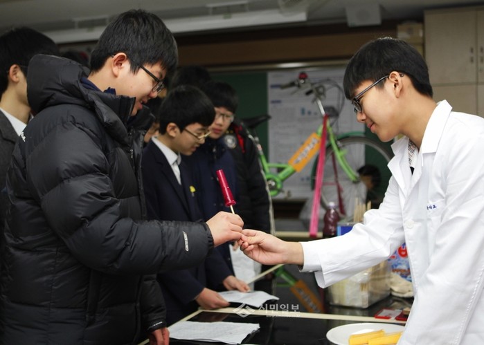 [시민일보]인천 산곡남중학교는 16일 제8회 '백마제'를 열어 학생들의 화합과 재능을 발휘하는 기회의 장을 마련했다. 축제는 1부 '문화마당', 2부 '공연마당'으로 구성됐다. 사진은 1부 '문화마당'의 체험부스를 구경하고 있는 학생들의 모습