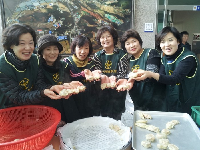 [시민일보]경기 용인시 처인구 모현면 새마을협의회는 지난 16~17일 모현면 주민센터에서 불우이웃 돕기를 위한 만두 빚기 행사를 펼쳤다. 사진은 직접 빚은 만두를 들고 기념사진을 찍는 새마을협의회 회원들의 모습.