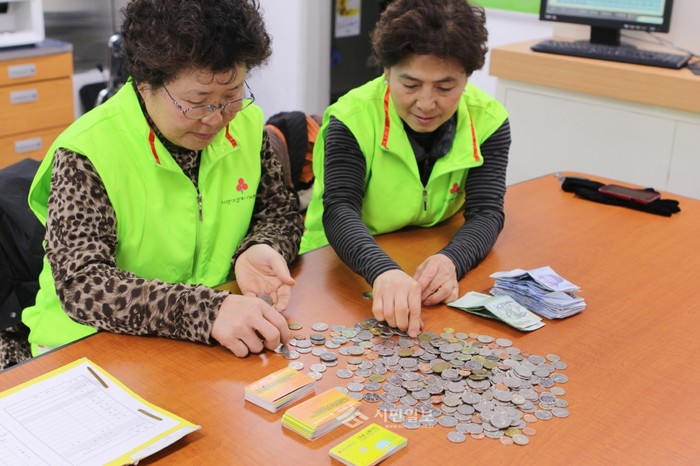[시민일보]‘사랑의열매 나눔봉사단’은 지난 6~17일 캠페인을 통해 모아진 성금을 개수해 서울 모금회에 전달했다. 사진은 사랑의열매 종로구 나눔봉사단이 지하철 1·2호선 시청역에서 모금캠페인 진행 후 모금함에 담긴 1회용 교통카드와 현금을 개수하고 있는 모습.