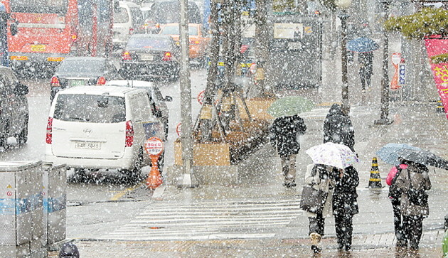 절기상 대한인 20일 오후 수도권 지역에 대설주의보가 내려진 가운데 서울 서대문구 충정로 도로를 시민들이 눈을 맞으며 걸어가고 있다.