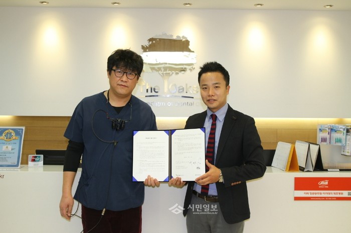 [시민일보]서울 강남구 밀알복지재단은 지난 15일 치과치료가 필요한 의료사각지대 안면장애인들의 무료 수술 및 치료를 위해 옥스치과와 협약을 맺었다. 사진은 협약식에 참여한 밀알복지재단과 옥스치과 관계자들의 모습.