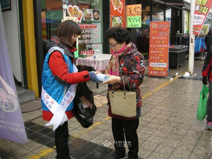 [시민일보]경기 여주시는 지난 20일 여주시 중앙로와 제일시장에서 시청 공무원과 여주 여성의용소방대, 자원봉사자, 지역자율방재단 등 50여명이 참여해 214차 안전점검의 날 행사 캠페인을 실시했다. 사진은 봉사자가 폭설시 내 집·점포 앞 눈치우기 운동에 대해 홍보하는 모습.