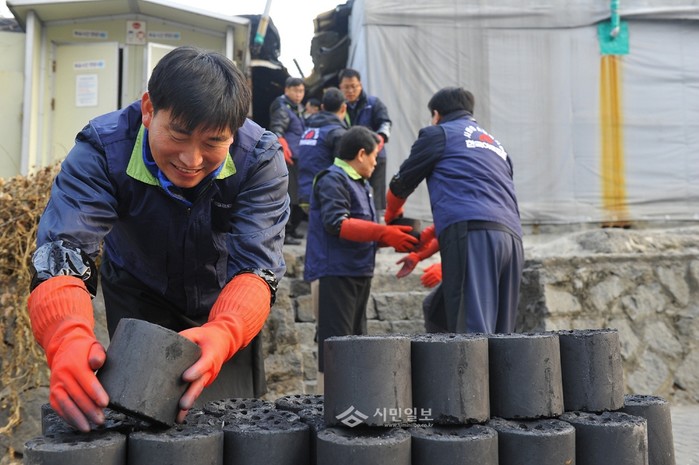 [시민일보]최근 한국야쿠르트 임원 팀장 70여명이 서울 송파구 거여동 판자촌 기초생활 수급자들에게 한겨울을 따뜻하게 보낼 수 있는 연탄 7000장을 전달해 외로운 설을 보내는 이들에게 온정을 나눴다. 사진은 연탄을 나르고 있는 한국야쿠르트 직원들의 모습.